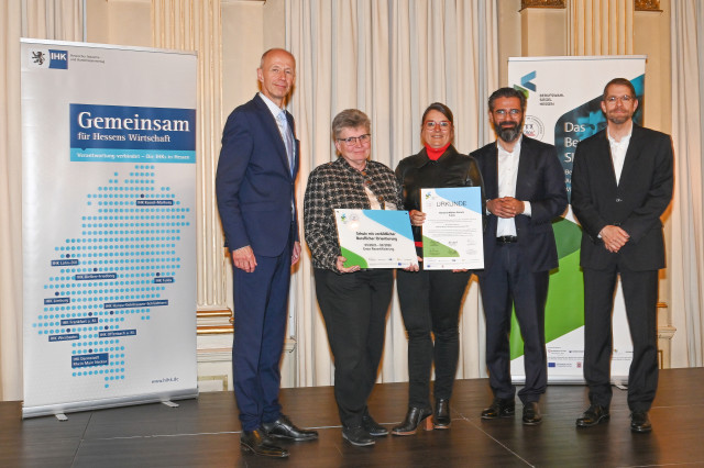 In diesem Jahr verliehen Bildungsminister Armin Schwarz, Umut Sönmez, Staatssekretär des Hessischen Wirtschaftsministeriums sowie der Vize-Präsident des Hessischen Industrie- und Handelskammertages, Dr. Felix Heusler in Wiesbaden die Auszeichnung „Gütesiegel Berufs- und Studienorientierung“ an Schulen aus ganz Hessen. Aus der Bezirksgruppe Osthessen waren unter den ausgezeichneten Schulen die Richard-Müller-Schule in Fulda für eine erste und die Martinus-Schule in Bad Orb für eine bereits dritte Rezertifizierung.